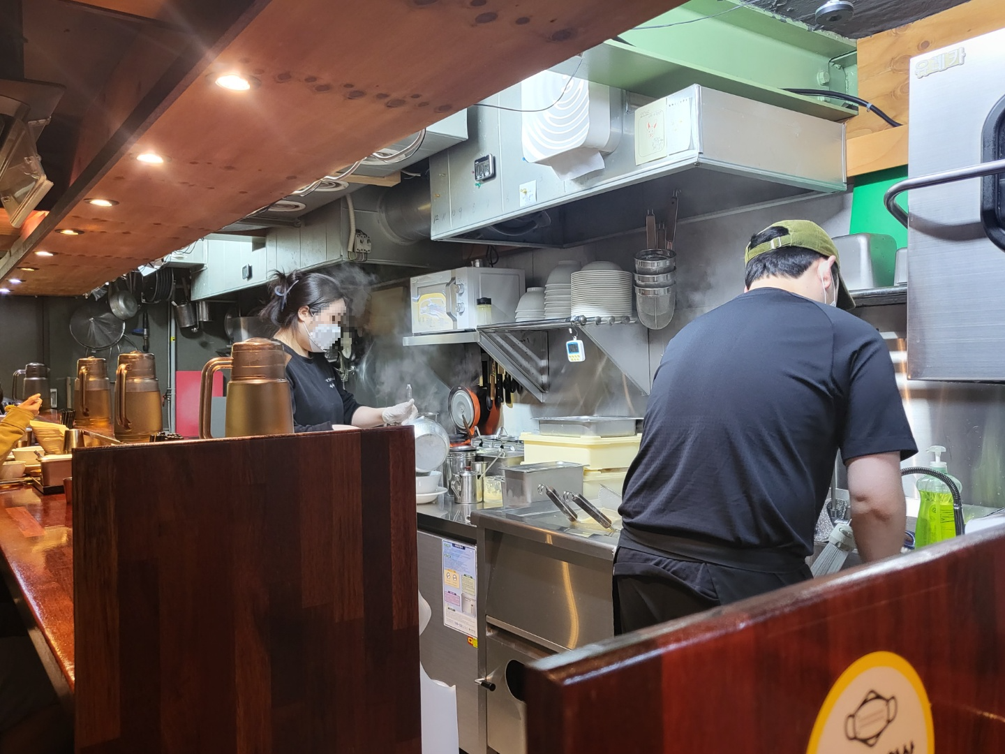 주문을 하고 나면 가게에 입장할 수 있는데, 전좌석이 다찌석이고 웬만한건 셀프로 먹는 형태다.